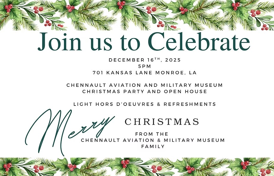 Join the Chennault Aviation & Military Museum for their annual Christmas Party and Open House! Check out the exciting new renovations and enjoy light refreshments, fellowship and fun!