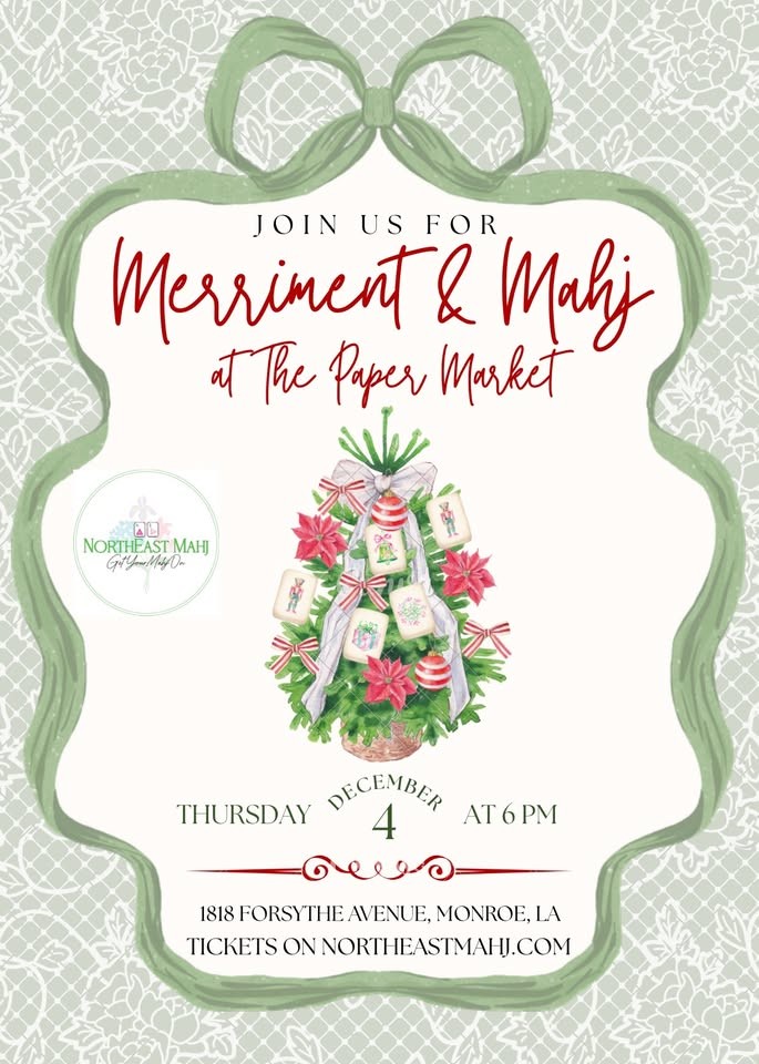 ✨✨Don’t let everyone else have all the fun — these tickets are going quick! Mahj magic, a yummy mobile charcuterie setup with Honeybee Charcuterie Co., delicious cocktails, and the cutest Christmas paper goods + gifts at The Paper Market. 🎄🀄✨
